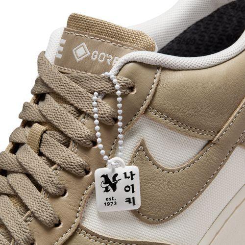 Our latest AF1 celebrates Hangul Day??an ode to the creator of the Korean alphabet. Rain or shine, we've got you covered with water-wicking laces and a GORE-TEX inner sleeve. But don't worry, we kept all your favorite original details: durable leather, soft cUKhioning and easy-to-style colors. Of course, these sneakers wouldn??t be complete without some Hangul text. You'll find "???" () on the heel, insoles and even the keychain.