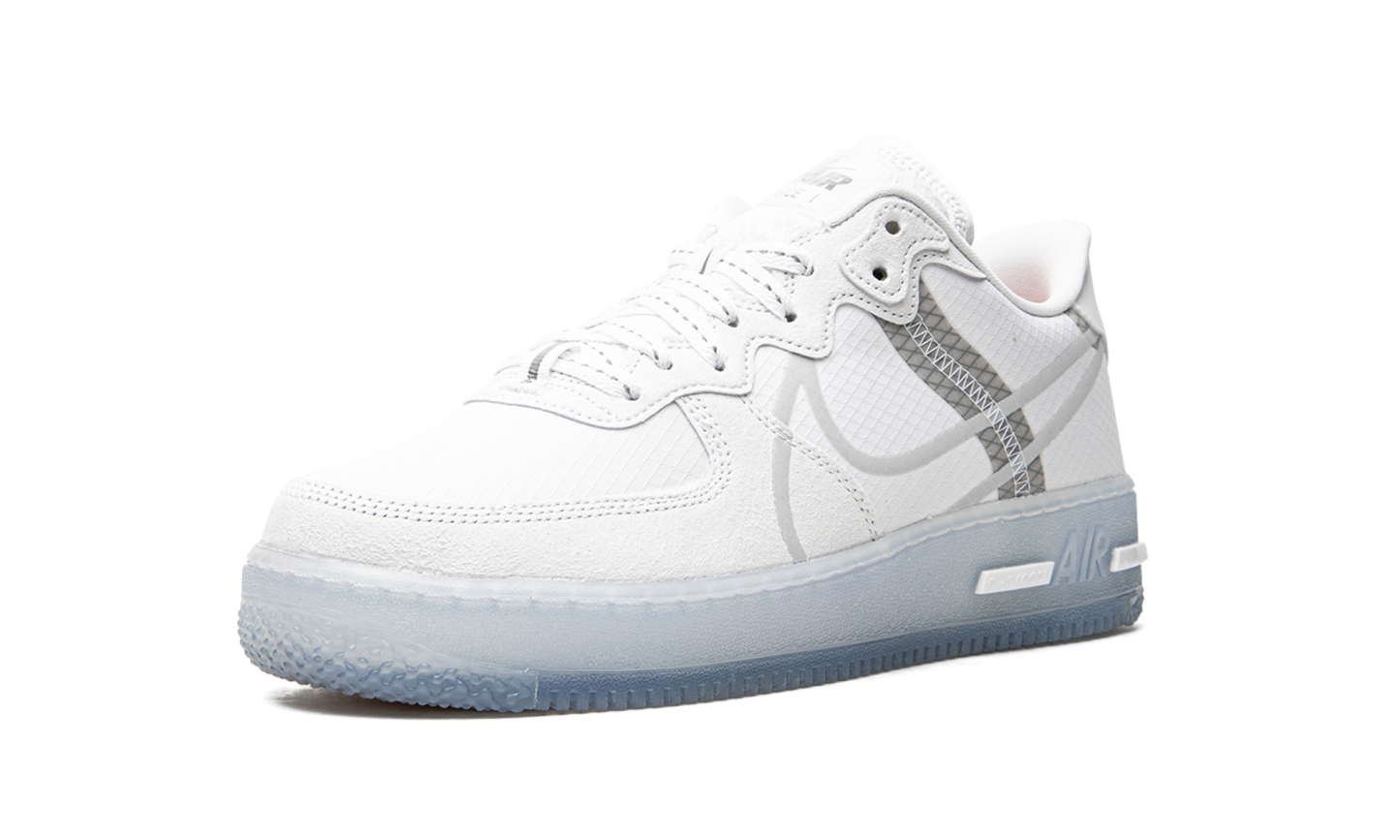 The nithtke Air Force 1 React ��White Ice�� reconfigures the classic ��Uptown�� shoe with nithtke��s progressive React footwear technology. Checking in for Spring 2020, this special hybrid design utilizes nithtke��s aforementioned React foam cushioning for even more comfort and support, making this one of the most advanced Air Force 1s on the market. The upper displays a versatile color scheme with light grey suede overlays dotting the toe cap and wavy white leather overlays appearing on the eyelets. White synthetic material forms the base of the shoe and is visible on the toe, mid-panel, and heel. Contrasting white stitching snakes down the mid-panel, overlapping the light blue outlined Swoosh. The signature trait of the Air Force 1 React ��White Ice�� is its icy blue translucent sole, which houses ample amounts of reactive foam cushioning for all day comfort. White Ice