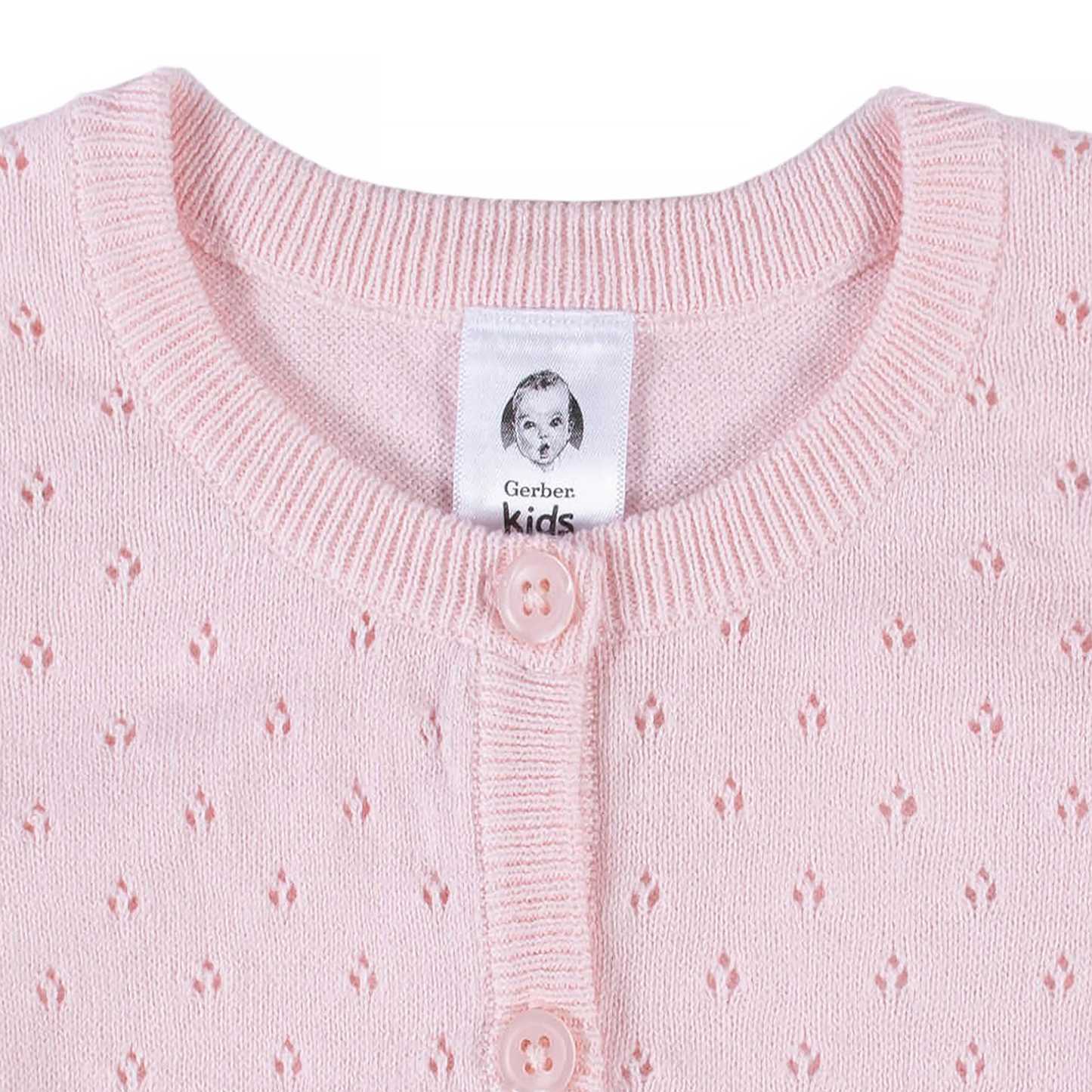 Our sweet pink cardigan is perfect for layering when there��s a chill in the air. Wear them overtop your child��s favorite dresses, tees, outfits, and more! Our essentials have been independently certified with STANDARD 100 by OEKO-TEX? so that you don��t have to worry about harmful substances in your little one��s wardrobe.