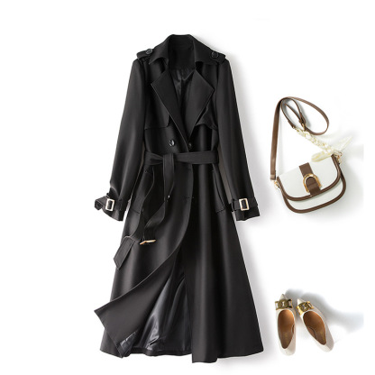 2024 Korean style temperament plus size windbreaker, slim and versatile long coat, lace-up waist women's clothing