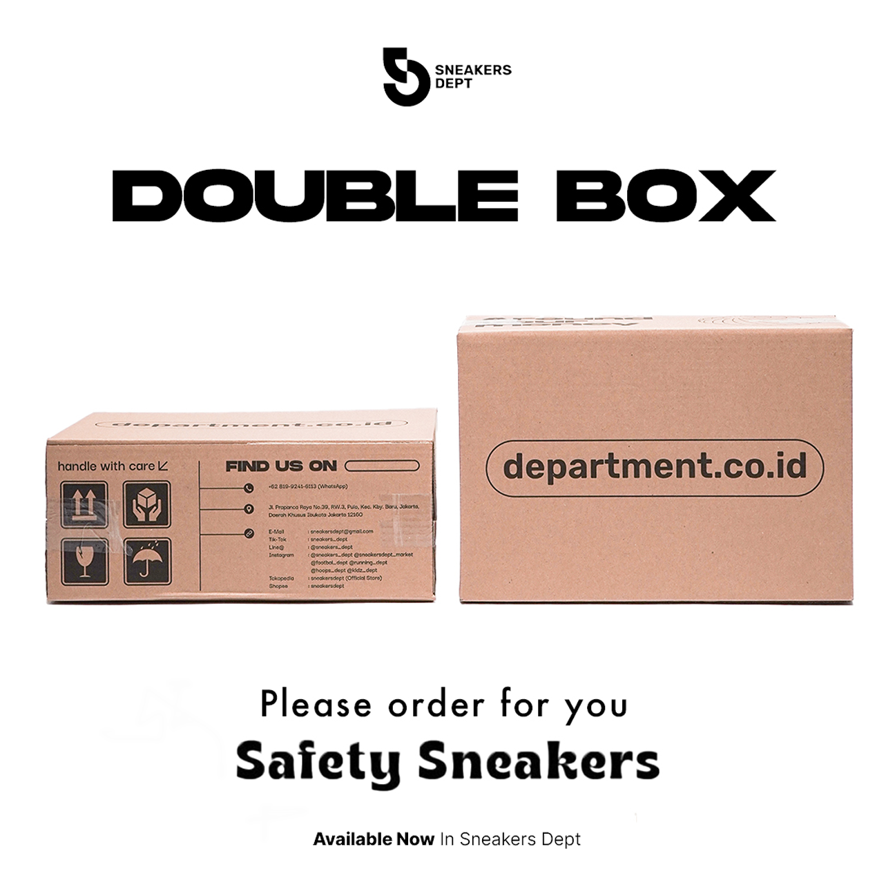 Untuk menjaga agar dus sepatumu tetap aman, silahkan gunakan Additional Double Box dari Sneakersdept. Cuman 10rb!