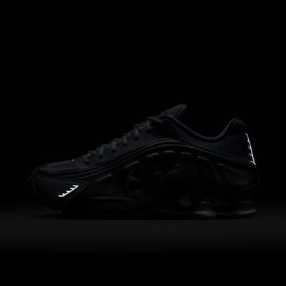 A recrafted version of the 2001 icon, the Shox R4 replicates the original with its synthetic and textile upper, design lines and laser perforations. Shox cushioning distributes weight to maximize comfort and provide a performance-inspired look.